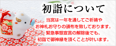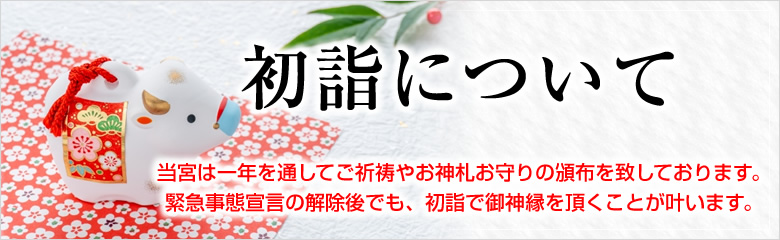 2021.01.07緊急事態宣言発令についてコロナ禍の感染拡大に伴い、神奈川県に対して再度の「緊急事態宣言」が発令されました。現状では、宣言下におきましても神社の閉鎖、参拝停止等は実施されません。また、本年は宣言解除後の2月3月またそれ以降も、当宮では初詣の期間ととらえます。初詣をお控えになった方も、疫病鎮静後には是非ご参拝されて御神縁を賜って頂きたく存じます。