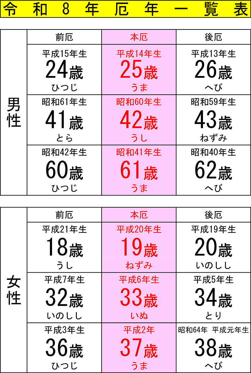 特に男性の42歳、女性の33歳は大厄ともいわれ重要な節目でもあります。